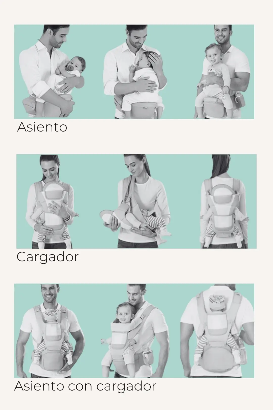 El cargador con asiento Cangurú 9 en 1 combina comodidad, seguridad y practicidad. Con diseño ergonómico, bolsillos útiles y portabotellas, es ideal para bebés de 0 a 36 meses. Hecho en algodón lavable, soporta hasta 30 kg. ¡Disfruta tus paseos con tu peque aprovechando el precio especial por tiempo limitado!