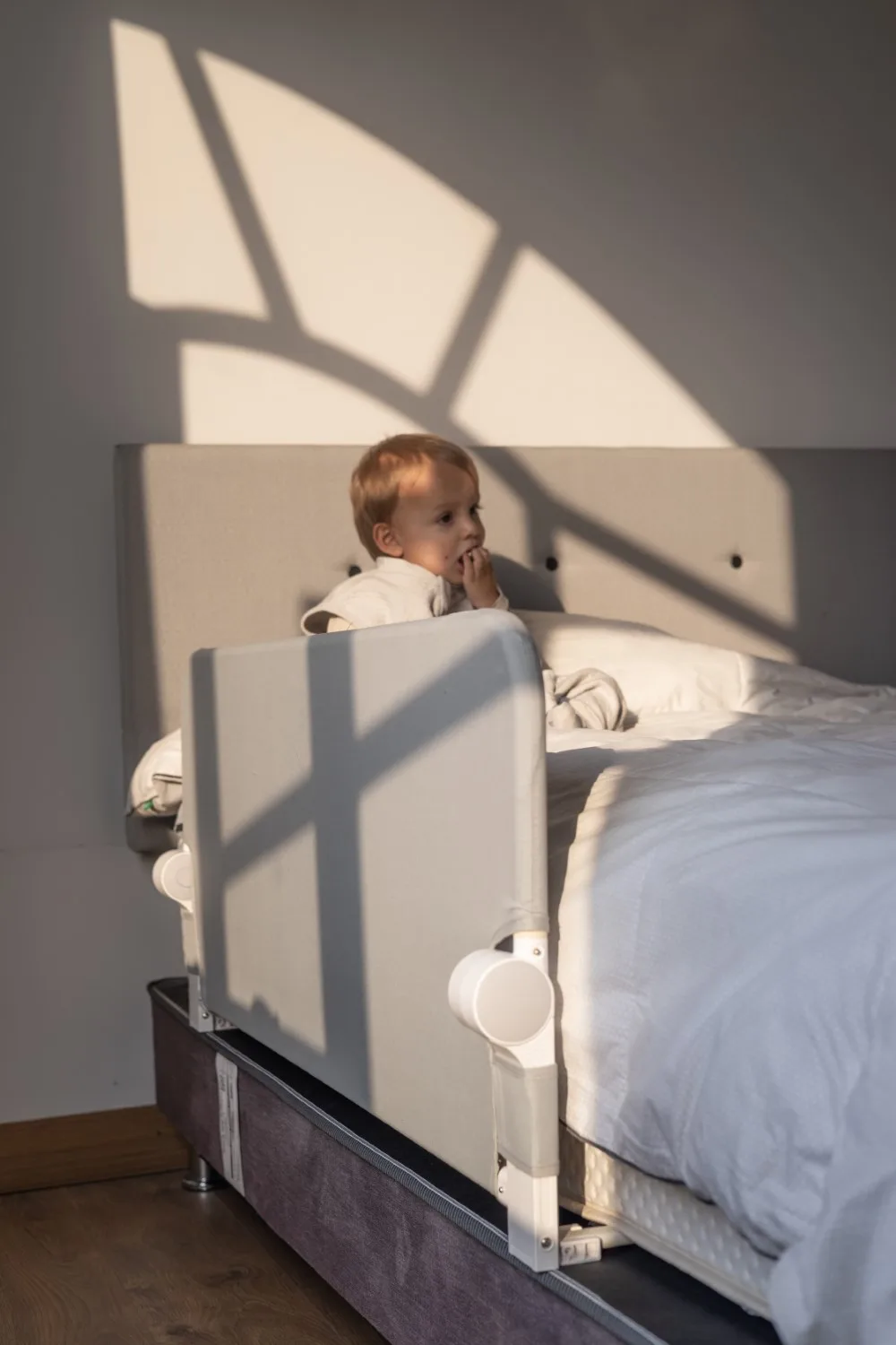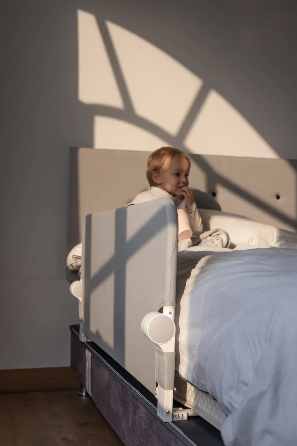 Buscaba algo para mi enano mientras duerme porque es movedizo, y me ha ido muy bien, es grueso y lo entornille a la cama. Lo bajo durante el dia y ya para la noche lo levanto, nos va chevere.
