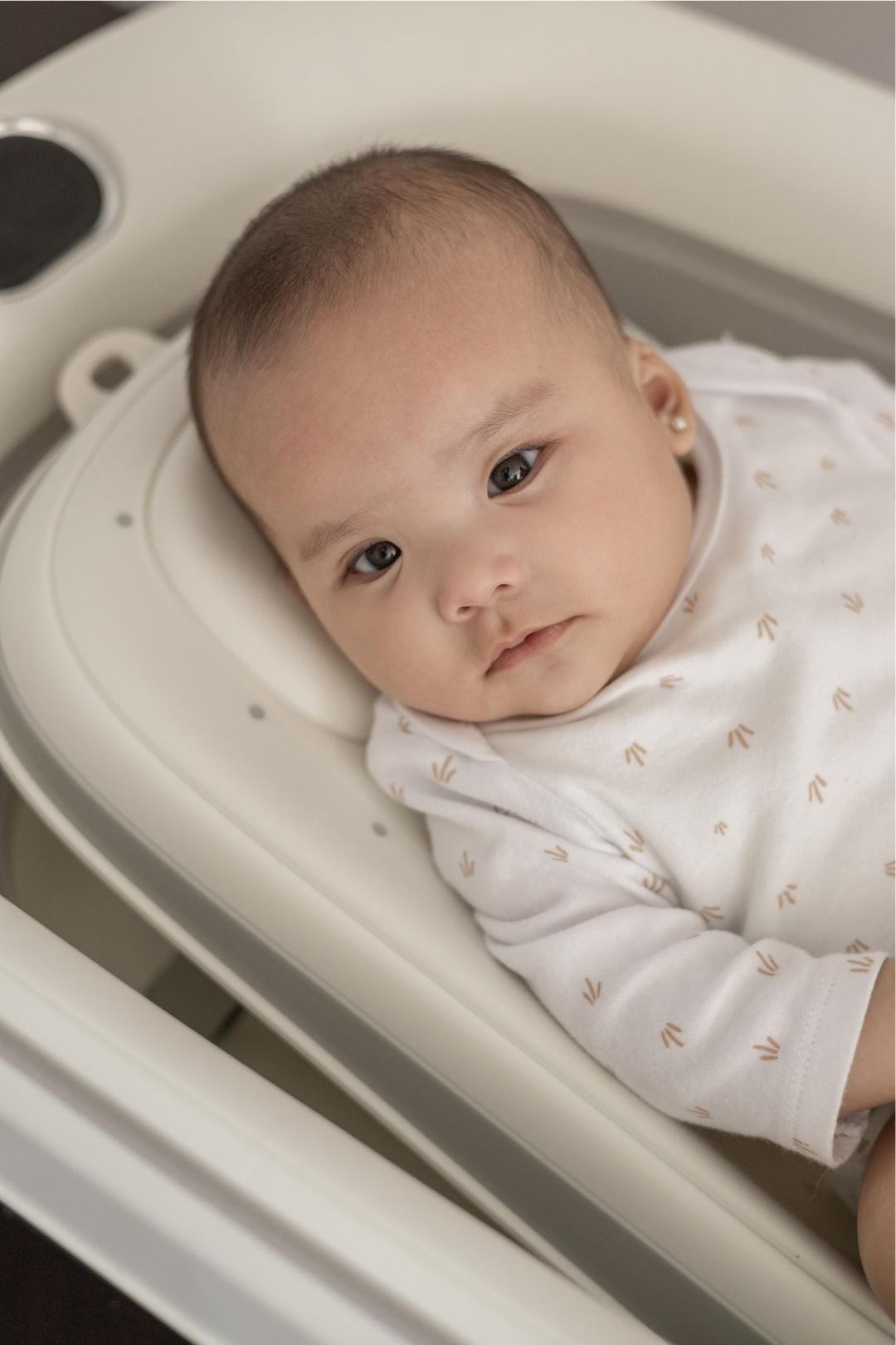 Con su reposacabezas y 3 niveles de elevación, tendrás la tranquilidad de un soporte estable y práctico. Además, su sistema de drenaje permite un secado rápido, evitando acumulación de humedad y protegiendo la piel de tu bebé.